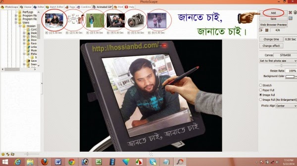 এবার Animated Gif বাটনে ক্লিক করে তারপর Add বাটনে ক্লিক করে আপনার ছবিগুলো দেখিয়ে দিন যেগুলো দিয়ে আপনি এনিমেশন তৈরি করতে চান, এভাবে আপনি অনেক গুলো ছবি একসাথে করে animation তৈরী করতে পারবেন।